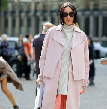少女心是無(wú)分季節(jié)的,就算蕭瑟的秋冬,街頭仍可見調(diào)皮的粉色。無(wú)論是現(xiàn)代剪裁洋裝、硬挺輪廓的長(zhǎng)外套或者是活力的運(yùn)動(dòng)夾克,運(yùn)用上粉色都平添浪漫的心情。而粉色與白色無(wú)疑是一組好搭檔,使原本就柔和的粉色看起來(lái)又多了幾分柔情。質(zhì)感的白色還能中和粉色的稚嫩感,穿出時(shí)髦的氣息。建議膚色白的女生將粉色安排在上半身,襯托膚色更加動(dòng)人,粉色大衣搭配白色西褲、粉色洋裝搭配白色球鞋,都是街拍常見的造型方案。